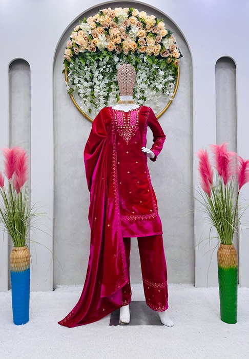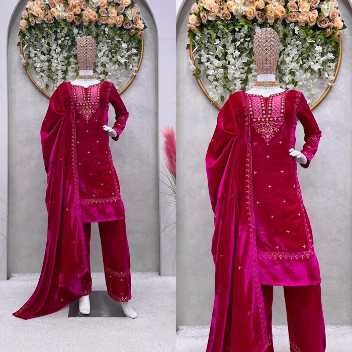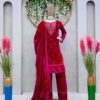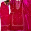 - Three-Piece Ensemble: This winter suit comes as a complete set with a designed dupatta, velvet pant, and a matching kurta. The cohesive design ensures a put-together look that is both trendy and traditional.