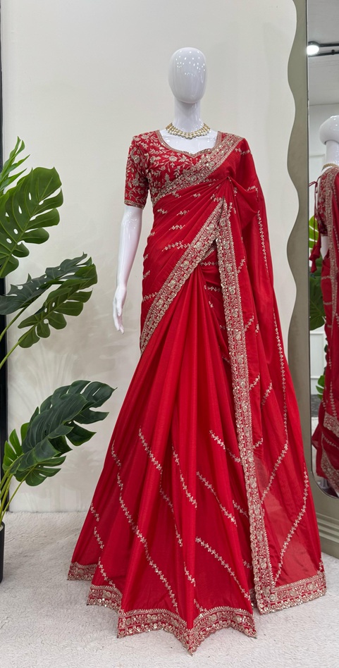 Chinnon Silk Saree with Thread and sequins work: A statement ofย taste and timeless beauty