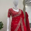 This “Ethereal Radiance” Silk saree is more than just an outfit; it’s a statement of refined taste and timeless beauty, ensuring you feel confident and radiant on any special occasion.