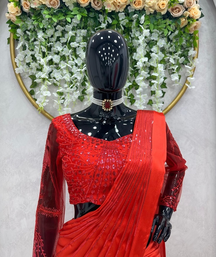 Ready to wear Designer Party Wear Satin Silk Lehenga Saree- The Red Rose