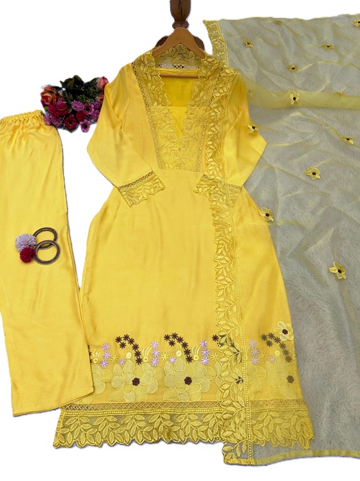 Overall, this sunshine Embroidered salwar suit in yellow colour with its intricate details and comfortable construction is a perfect blend of style and practicality. It’s sure to become a cherished piece in your wardrobe. Shop Now: Don’t miss the opportunity to add this stunning Embroidered Salwar suit in Muslin fabric ensembles to your wardrobe. Shop now and experience the timeless elegance and sophistication it brings to your every look! |