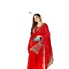 - Finished with a four-sided lace border with additional rivet Moti work, adding a delicate and ornate touch.