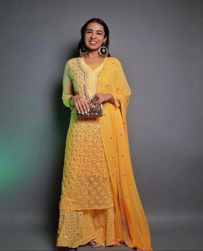- Design: Straight-cut kurti with side slits and an elegant palazzo for ease and style.