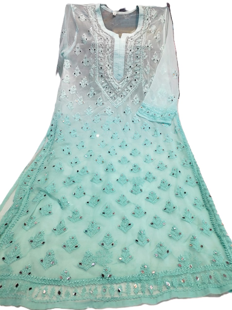 - Embroidery: Authentic Lucknowi Chikankari, showcasing fine needlework.