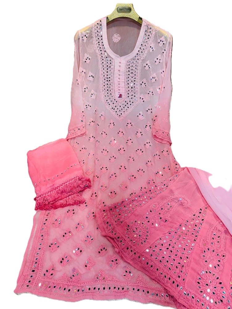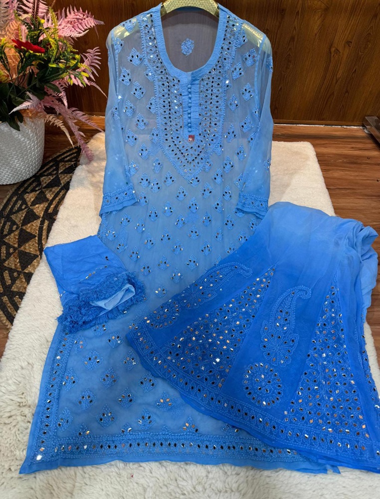 Lucknowi Chikankari Kurti Palazzo Set with Dual Sided Mirror-Work: An Eye catching for Women