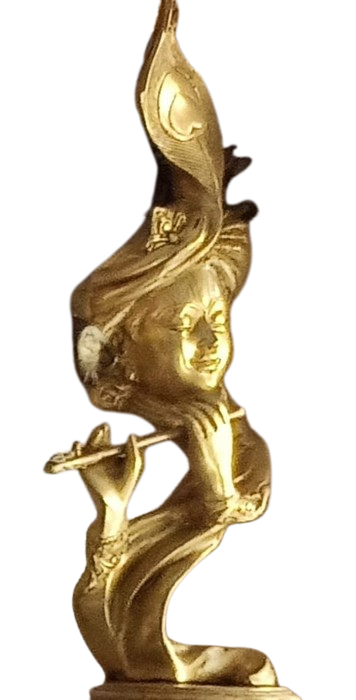 - The brass sculpture of Lord Krishna with a flute and a smiling face is not only a work of art but also grace of Culture and a focal point for devotion. Devotees seek inspiration, joy, and spiritual guidance from this artistic representation of the divine.