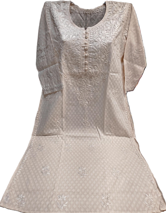 Chikankari Kurti crafted from the finest Malmal Cotton. Renowned as a premium product from Lucknow, Chikankari is an age-old embroidery technique that evolved since generations: