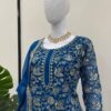 - The dupatta, made of matching faux georgette, completes the ensemble.