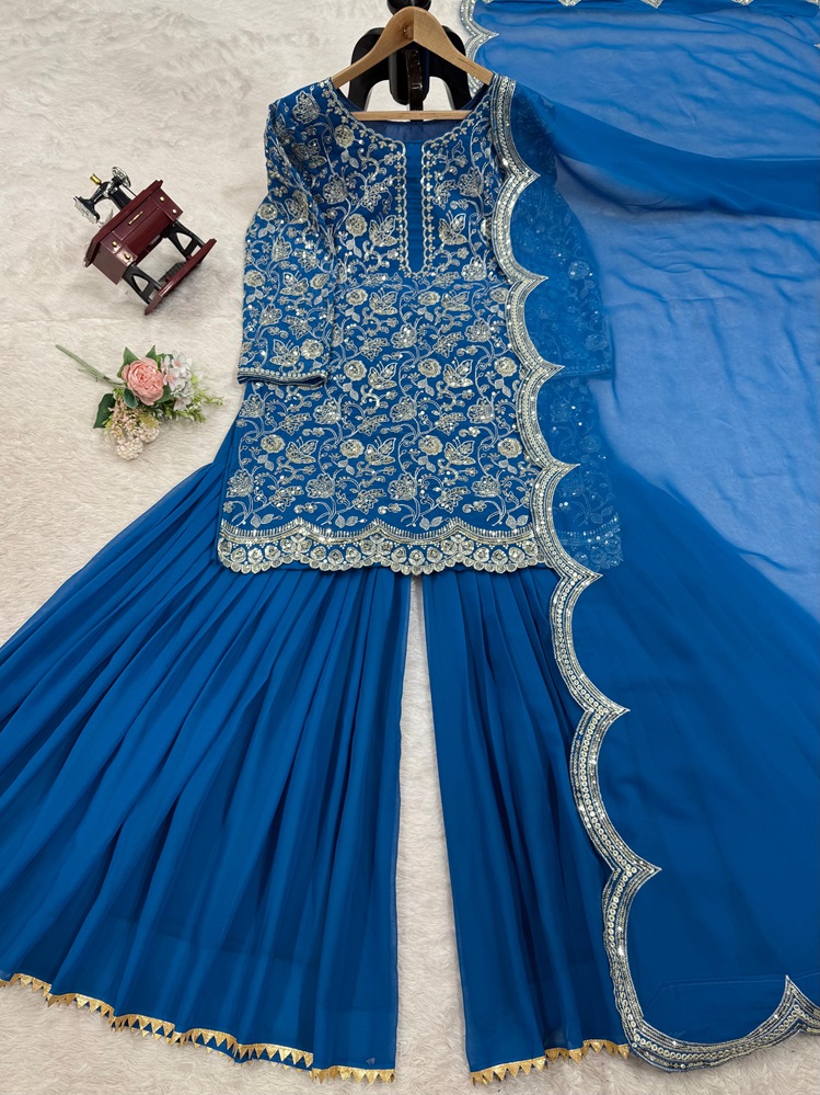 - Coordinated Design: The matching top, sarara, and dupatta create a harmonious and sophisticated look.