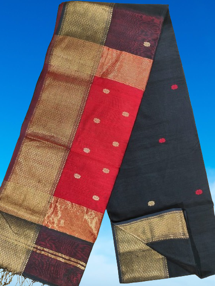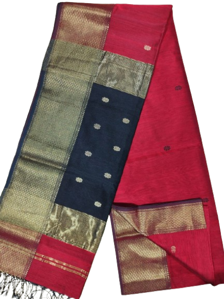 - Fabric Fusion: Crafted from a blend of Maheshwari cotton and silk, this saree offers the best of both worlds. The cotton provides comfort, while the silk adds a touch of luxury, creating a fabric that drapes beautifully.