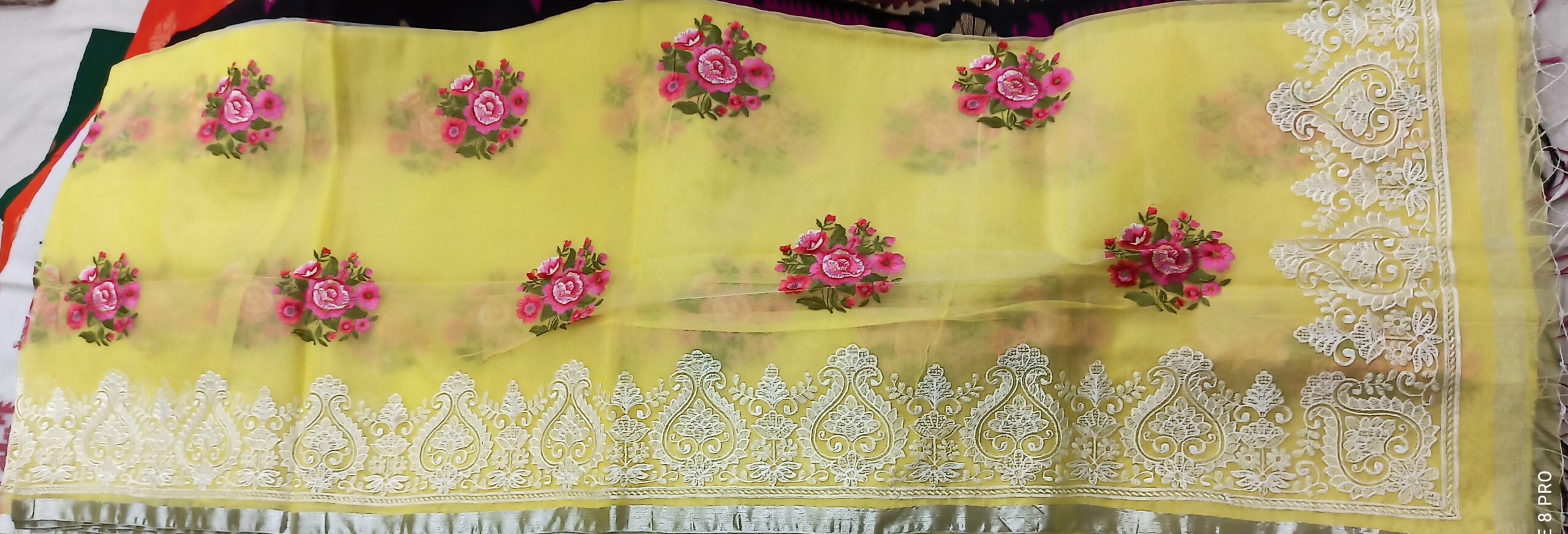 Malmal Organza Saree with Multicolor Thread Work : Phulia