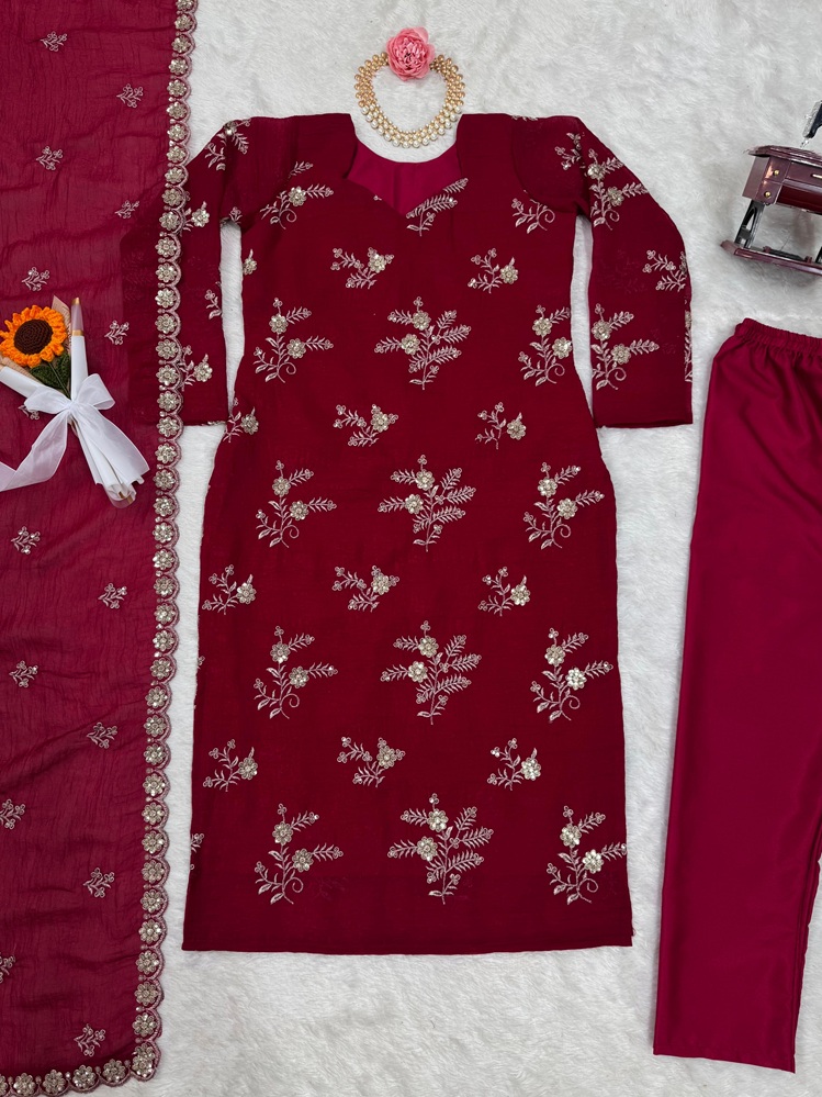 Premium Crunchy Silk Suit set with Thread & Sequin Work – Made For Women