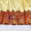 - Golden Zari Elegance: The Golden zari used in the pallu and border adds an element of grace and sophistication. It complements the vibrancy of the Yellow saree, creating a harmonious balance.