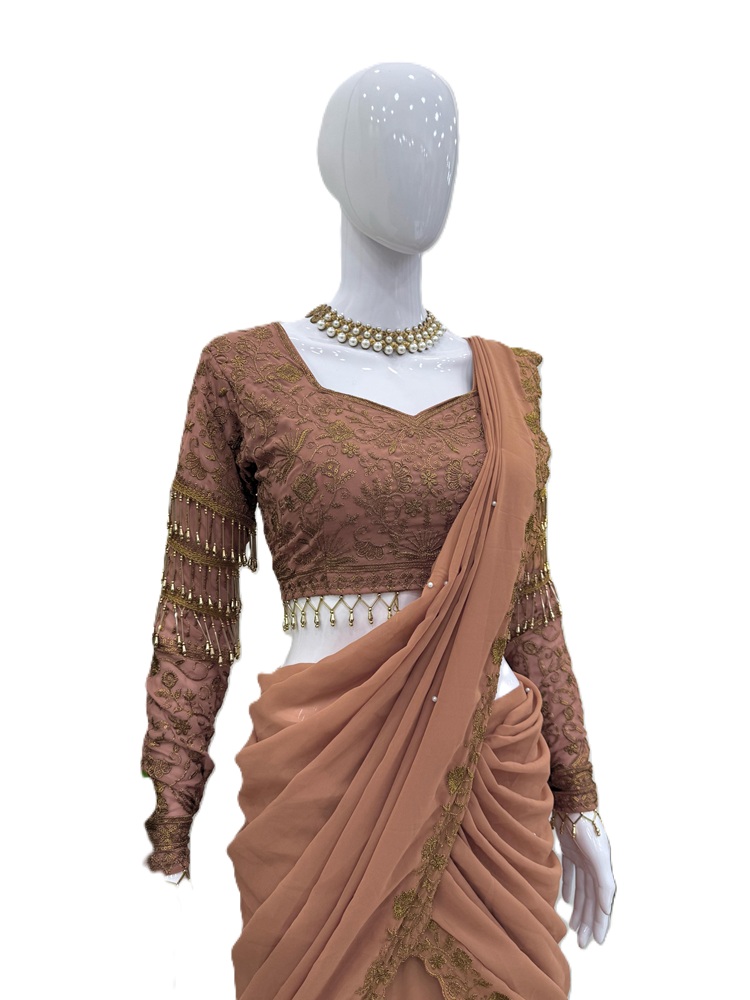 - Comfort: The pre-stitched nature often provides a more comfortable and secure fit compared to a traditionally draped saree, allowing for easier movement.