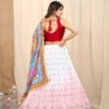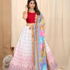 - Chiffon Splendor: Crafted from lightweight and flowy chiffon material, this lehenga promises both comfort and grace. The fabric drapes effortlessly, creating a mesmerizing silhouette that resonates with every movement.