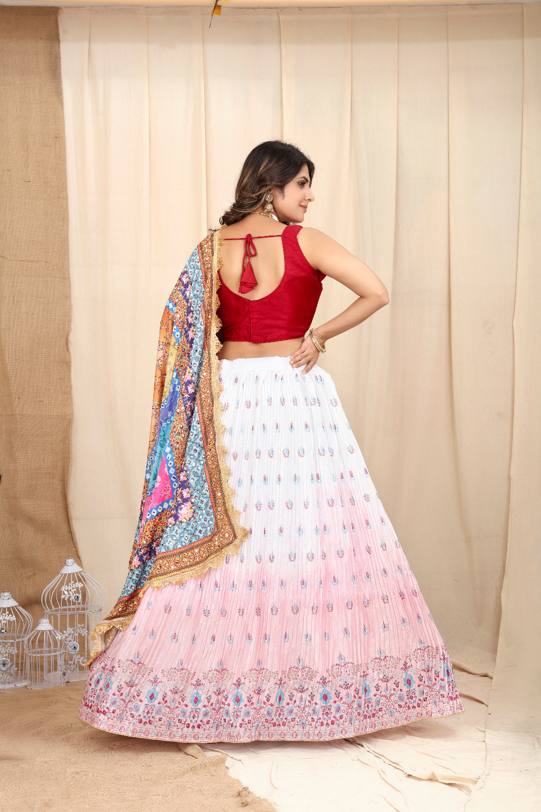 Shimmer Lehenga in Chiffon with mirror work Dupatta : Dazzling Radiance