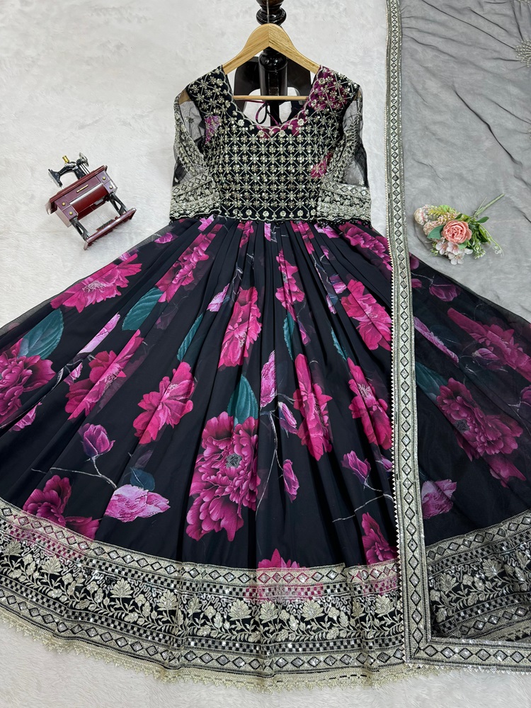 Stunning Faux Georgette Digital Print Gown Set : Ethereal Elegance