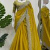 This exquisite designer Silk saree drapes in the luxurious embrace of Heavy Tabby Silk, a fabric renowned for its rich texture and elegant fall. The entire saree is meticulously adorned with intricate Thread & Sequins work, creating a mesmerizing interplay of subtle shimmer and delicate embroidery. The threadwork adds depth and traditional charm, while the strategically placed sequins catch the light, lending a touch of contemporary glamour.