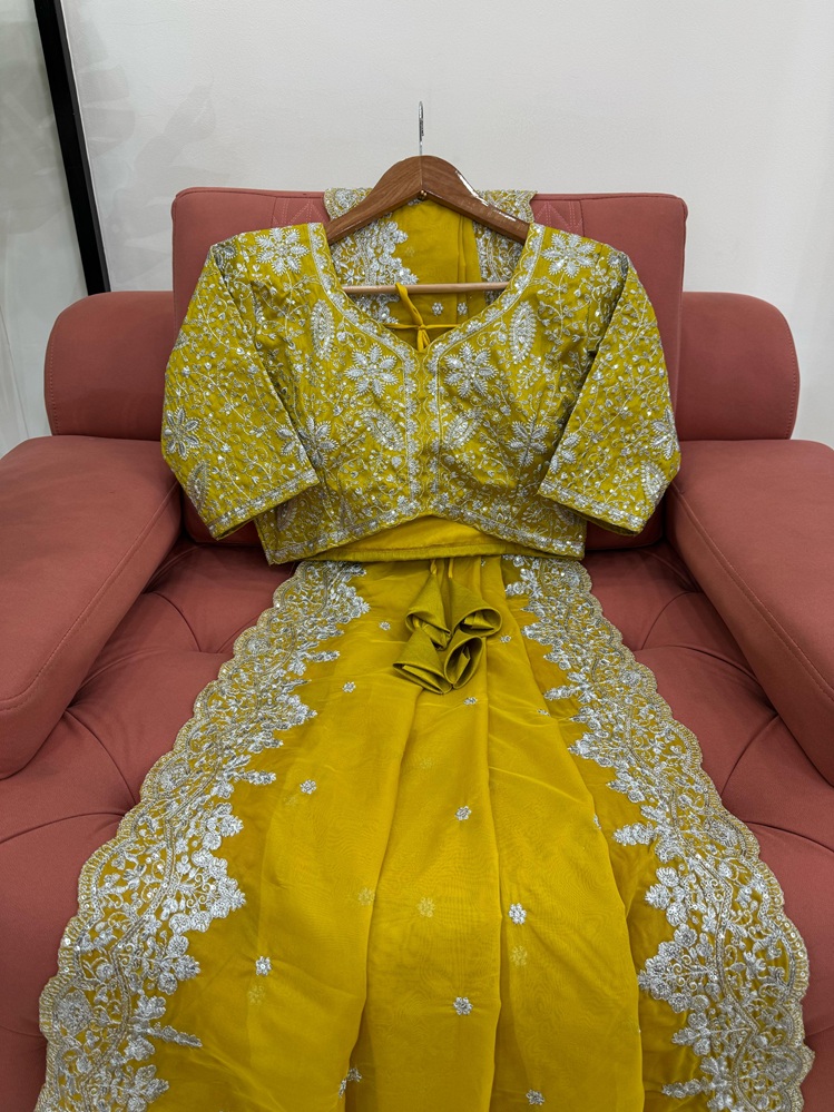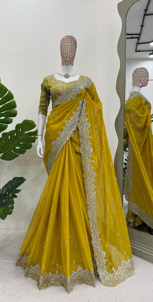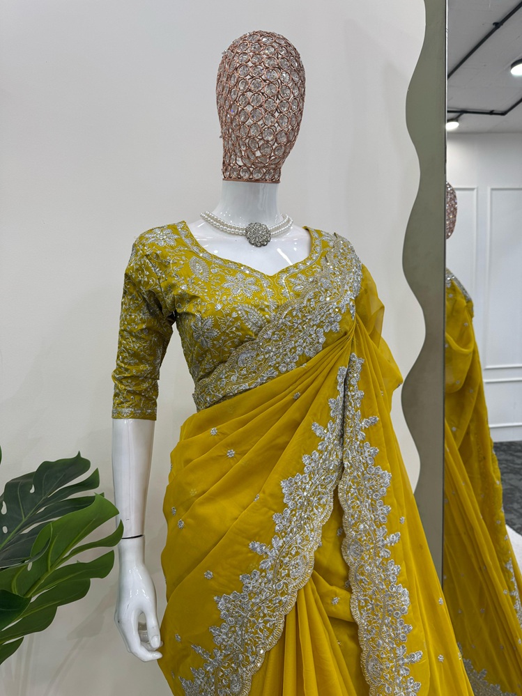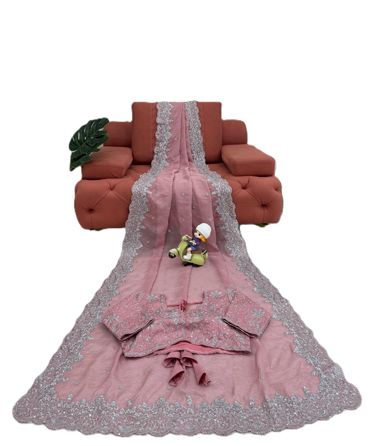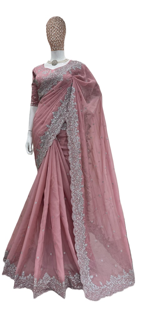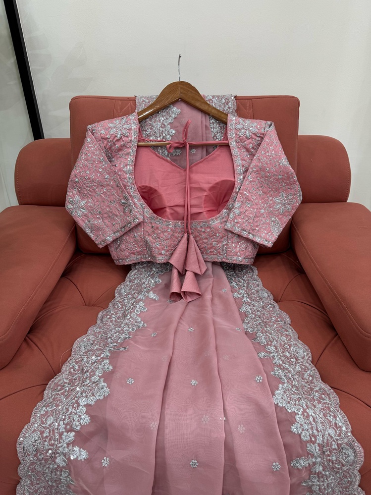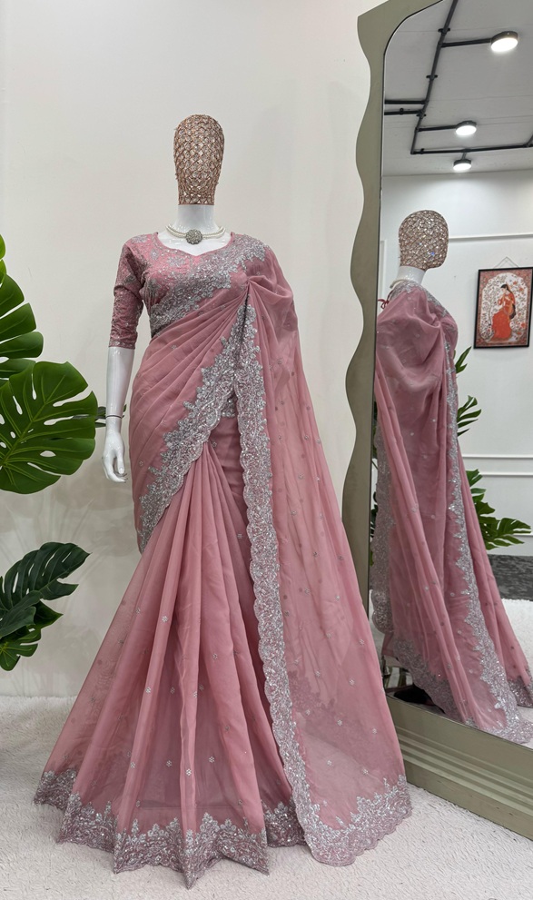 - Work: Intricate Thread embroidery combined with sparkling Sequins work throughout both the saree and blouse.
