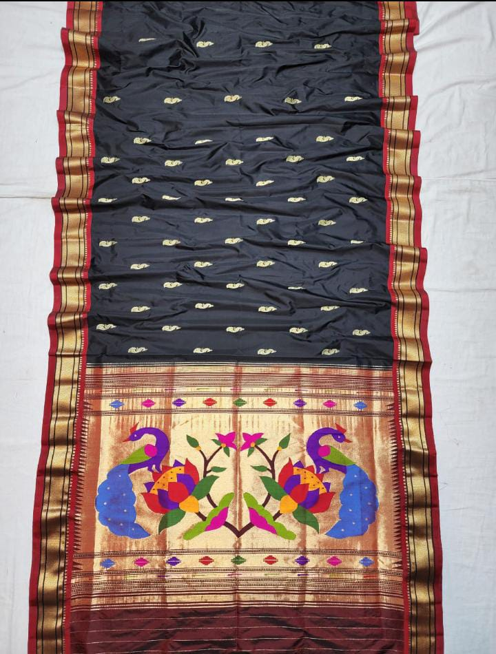 - Timeless Tradition: Rooted in the heritage of Paithani craftsmanship, these sarees feature the iconic Twin Peacock and flower motifs, creating a seamless blend of tradition and contemporary elegance. Every thread tells a story of the rich cultural tapestry of Yeola.