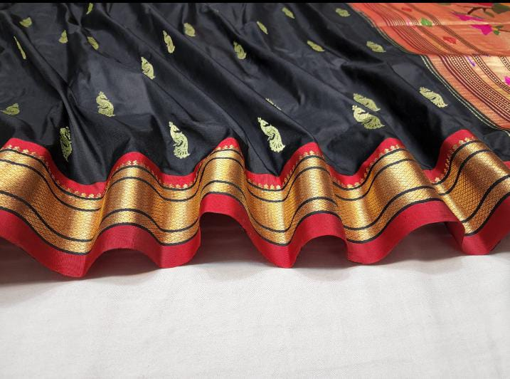 - Pure Silk Splendor: Immerse yourself in the luxurious embrace of pure silk. The fabric’s natural sheen and softness make the Yeola Paithani Saree not just a garment but a symbol of opulence and grace.